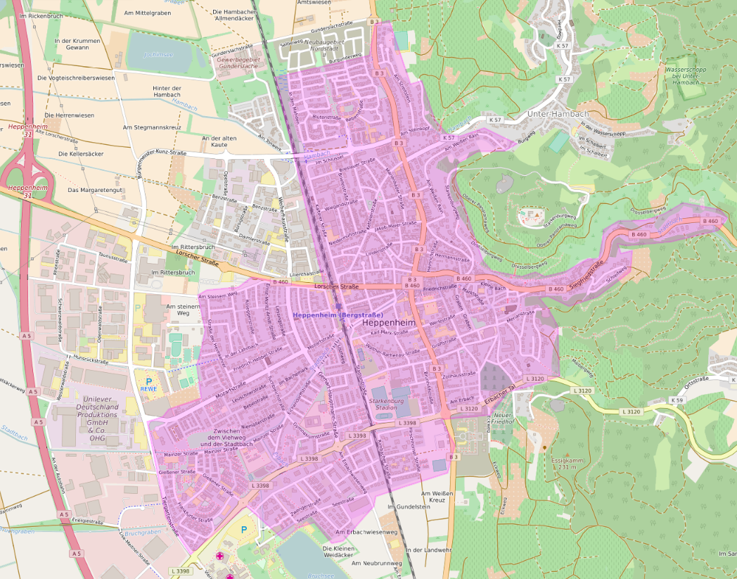 Übersichtskarte eigenwirtschaftlicher Glasfaserausbau in Heppenheim