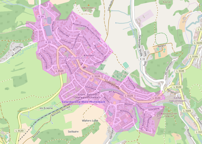 Übersichtskarte eigenwirtschaftlicher Glasfaserausbau in Wald-Michelbach